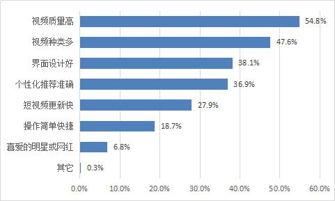 過半受訪者選擇短視頻APP時最看重的是短視頻質(zhì)量,占比達54.8%,視頻種類和數(shù)量(47.6%),界面設(shè)計(38.1%)、個性化推薦(36.9%)、更新速度(27.9%)也是用戶考量的重要因素。分析認為,內(nèi)容是用戶最關(guān)心的要素,對于優(yōu)質(zhì)內(nèi)容的爭奪是各短視頻分發(fā)平臺今后競爭的重點。