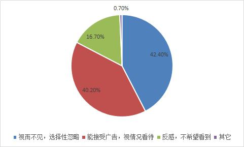 42.4%的受訪者對廣告持視而不見,選擇性忽略,40.2%的受訪用戶表示能接收廣告,僅有16.7%的受訪者表示反感廣告,不希望看到視頻當(dāng)中出現(xiàn)廣告。分析認為,廣告作為短視頻市場重要的變現(xiàn)方式之一,要與短視頻內(nèi)容充分結(jié)合,減少用戶反感心理,達到營銷效果。