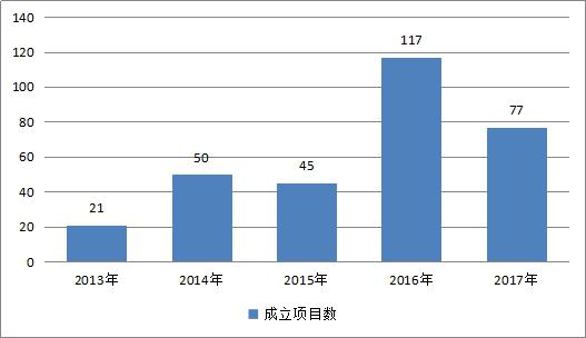 區(qū)塊鏈項目成立數(shù)量在2016年達(dá)到頂峰,在2017年出現(xiàn)一定回落。
