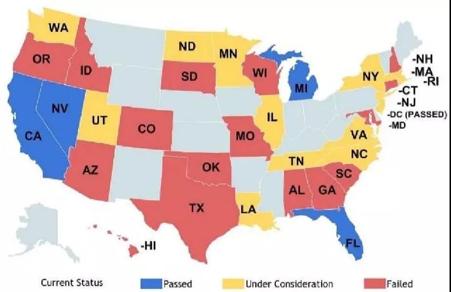隨著無人駕駛技術的不斷發(fā)展演進,對無人駕駛的立法變得十分重要。截至2015年,美國已經(jīng)有16個州啟動無人駕駛立法;截至2014 年是12個州,截至2013年是9個州,截至2012年是6個州。Nevada 在2011年授權無人駕駛車的運營,是全美第一個授權無人駕駛的州。之后,California,F(xiàn)lorida,Michigan,North Dakota,Tennessee和 Washington D.C 針對無人駕駛通過了相關的法案。Arizona州長簽署了無人駕駛的行政命令。