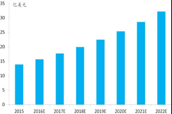 根據(jù)PWC機構預測,2016 年,智能車和車聯(lián)網(wǎng)市場預計規(guī)模為403 億歐元(約 3000 億人民幣),2021年,預計市場規(guī)模為1226億(約 9000億人民幣),智能車和車聯(lián)網(wǎng)市場預計以平均每年 25%的速度增長,其中,安全部分占據(jù)最大比重,從2016年的155億歐元增長到493億歐元。按照 PWC 的預計,智能汽車和車聯(lián)網(wǎng)全球市場空間未來有望達到萬億人民幣規(guī)模。