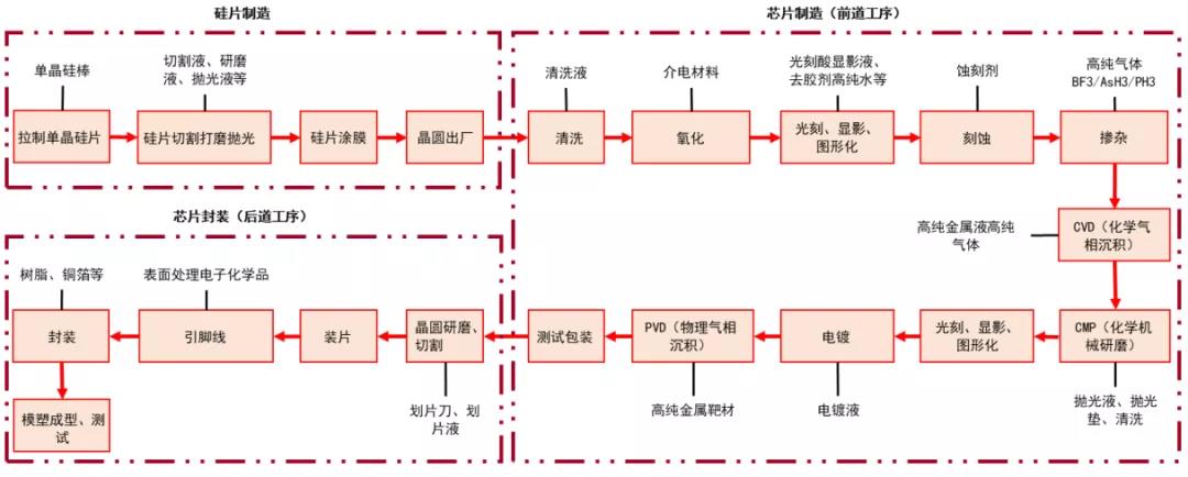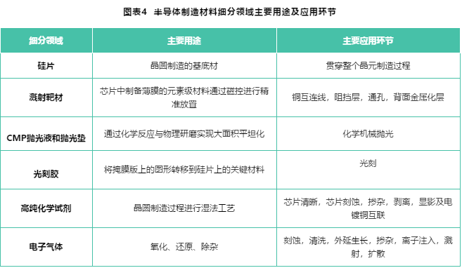 圖表2 芯片制造工序各單項工藝均配套相應材料