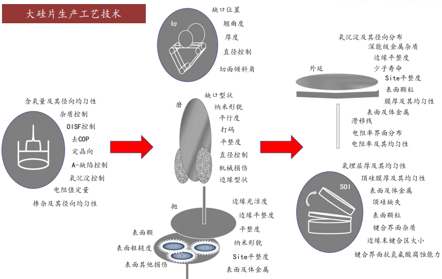 ②硅片產(chǎn)品按照加工工序可分為拋光片、退火片、外延片、節(jié)隔離片和絕緣體上硅片五大類產(chǎn)品。