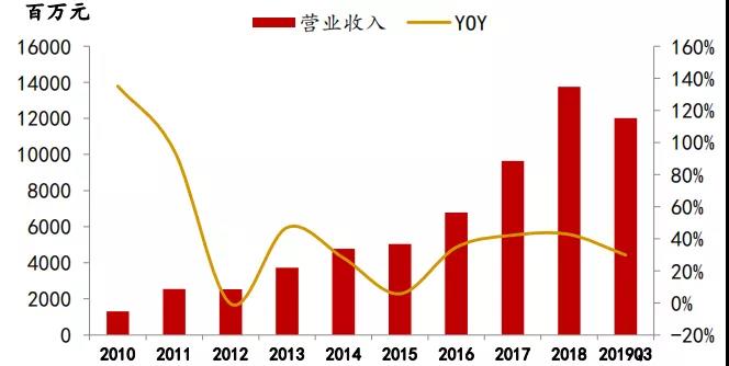 圖表16 中環(huán)股份營業(yè)收入(百萬元)