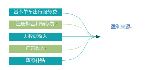 目前,共享單車的盈利來源主要分五類,第一類是基本單車出行服務(wù)收費(fèi),第二類是注冊押金和預(yù)存費(fèi)的增值收入,第三類是大數(shù)據(jù)收入,第四類是廣告收入,第五類是政府補(bǔ)貼。