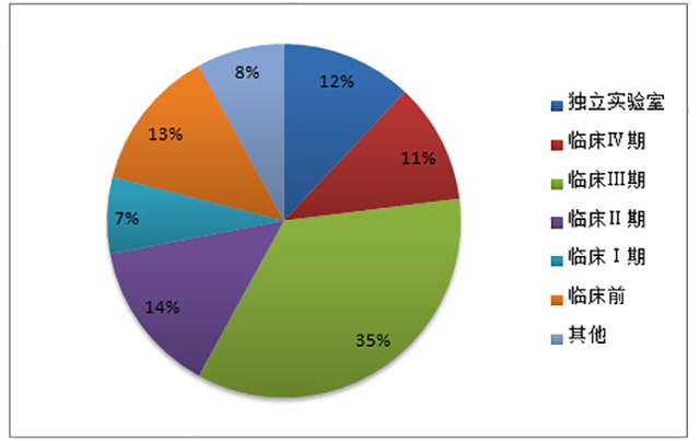 據(jù)美國臨床試驗數(shù)據(jù)庫等數(shù)據(jù)來源顯示,2014年全球 CRO 市場收入約 70%來自臨床市場。其中,臨床Ⅱ和臨床Ⅲ期占了全部收入的 50%左右。我國CRO市場臨床研究占到近60%。其中,臨床I至III期市場合計約 37%,占比相對較低,且服務水平尚有一定提升空間。近年來,隨著國內(nèi)大中型 CRO 企業(yè)在臨床試驗領域與跨國藥企開展合作,積累了越來越多的優(yōu)質客戶和臨床試驗研究經(jīng)驗,服務水平也正在快速提高,并逐步向國際先進水平靠攏。