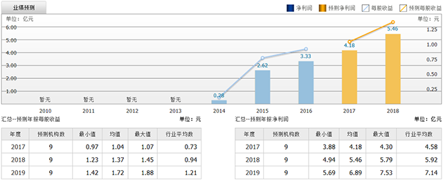 截至2017年7月17日,6個月以內(nèi)共有 17 家機構對泰格醫(yī)藥的2017年度業(yè)績作出預測;預測2017年每股收益 0.54 元,較去年同比增長 80%,預測2017年凈利潤 2.68 億元,較去年同比增長 90.4% 。