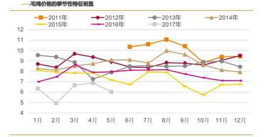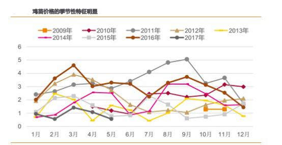 從歷史數(shù)據(jù)來看,年內禽類產(chǎn)品價格具有季節(jié)性,年內一般有兩輪上漲: