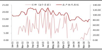 2、中期:緊盯在產(chǎn)父母代存欄變化趨勢