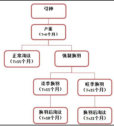 2)1日齡父母代到24周進入產(chǎn)蛋周期,經(jīng)過3周孵化,產(chǎn)出第一只商品代雞苗;