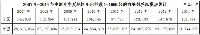 從以上數(shù)據(jù)分析可知,寧夏的肉雞飼養(yǎng)規(guī)模上得不到很好的提升,大多數(shù)都僅僅是靠家庭小規(guī)模飼養(yǎng)為主,大規(guī)模的飼養(yǎng)場在寧夏地區(qū)非常匱乏。不僅對寧夏肉雞行業(yè)的市場影響非常混亂,也不能達到更高更優(yōu)質的產(chǎn)量,提升寧夏肉雞行業(yè)市場競爭力顯的尤為困難。