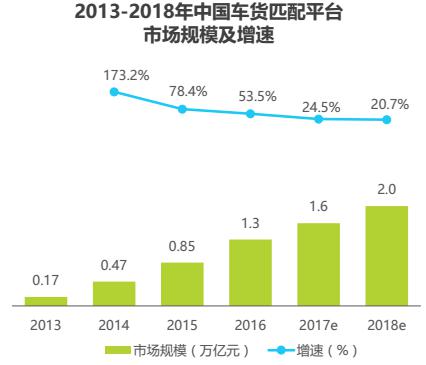 2、2016年車(chē)貨匹配平臺(tái)規(guī)模1.3萬(wàn)億元,物流智能裝備347億元