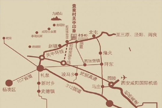 袁家村位于咸陽市禮泉縣,距離咸陽國際機(jī)場較近,空運(yùn)便利,有利于吸引國際旅客前來觀光體驗(yàn)。附近機(jī)場高速、武銀高速、312國道、107省道、關(guān)中環(huán)線等道路密布,交通發(fā)達(dá),西安至禮泉、西安至袁家村、咸陽至袁家村的客運(yùn)大巴發(fā)車頻率高,游客無論是乘大 巴還是自駕游都很便利。