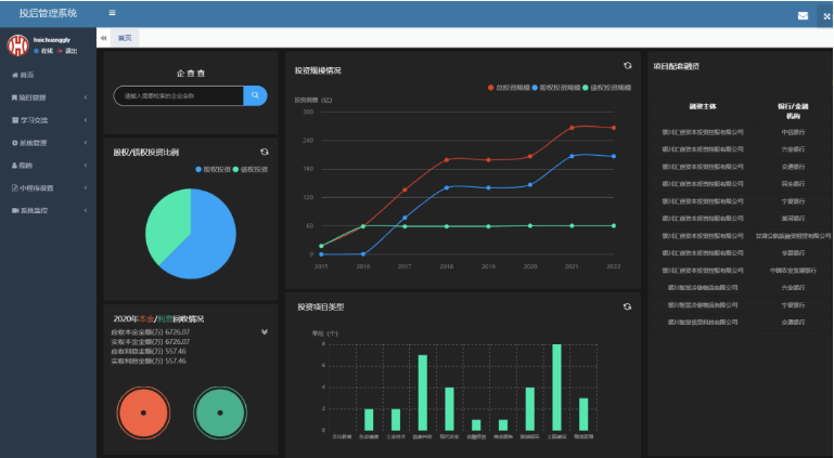 為進(jìn)一步全面推進(jìn)集團(tuán)公司國企改革三年行動工作落實(shí)落地,積極探索公司數(shù)字化轉(zhuǎn)型新路徑,推動數(shù)字經(jīng)濟(jì)與風(fēng)險(xiǎn)防控深度融合,著力提升公司合規(guī)風(fēng)控及投后管理的標(biāo)準(zhǔn)化、規(guī)范化、信息化水平,銀川智慧信息科技有限公司根據(jù)集團(tuán)公司關(guān)于國企改革、數(shù)字化轉(zhuǎn)型和高質(zhì)量發(fā)展的整體工作部署,打造了投后管理系統(tǒng)平臺,目前,已正式投入使用。平臺旨在通過投后管理系統(tǒng)平臺進(jìn)行良好的投后管理,為化解風(fēng)險(xiǎn)提供精準(zhǔn)有效的數(shù)據(jù)支撐,減少或消除潛在投資風(fēng)險(xiǎn),保障國有投資安全,實(shí)現(xiàn)國有資產(chǎn)的保值增值。