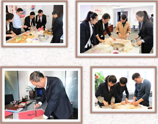 大家分成“愛吃餃子”“會(huì)做餃子”“多彩生活”和“幸?;▋骸彼膫€(gè)組合,展開了包餃子比賽。只見他們熟練的搟面皮、放餡料、捏餃子,十指翻飛之間,剁餡聲、歡笑聲、音樂聲,交織在一起,每個(gè)人臉上都洋溢著燦爛的笑容,公司里充滿了歡聲笑語(yǔ),匯聚成了一片歡樂的海洋。